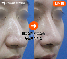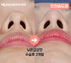 삼성드림이비인후과 인천송도점 <낮은코성형> 전후사진 [수술 후 3개월 경과]코의 겉모습 : 비개방으로...